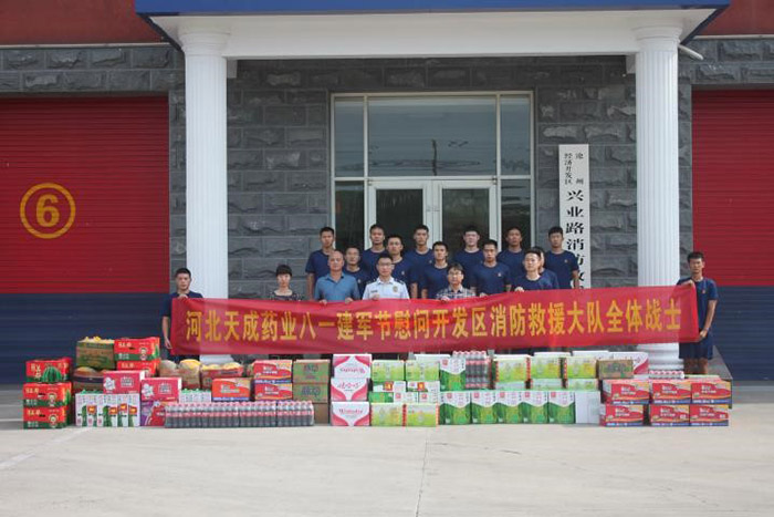 在八一建軍節(jié)來(lái)臨之際,7月31日河北天成藥業(yè)總經(jīng)理孫元清、常務(wù)副總經(jīng)理王顥等領(lǐng)導(dǎo)帶著滿滿的關(guān)愛與敬意,走進(jìn)了開發(fā)區(qū)消防救援大隊(duì),為全體戰(zhàn)士們送上了溫暖的慰問(wèn)和真摯的祝福。